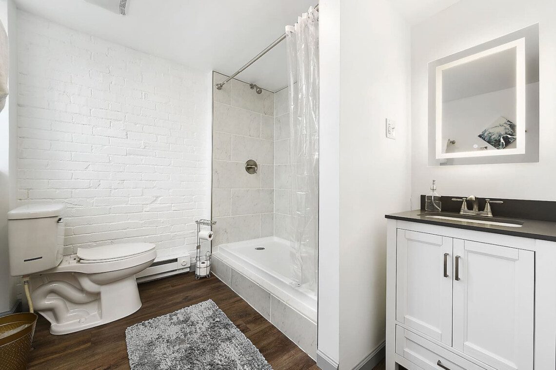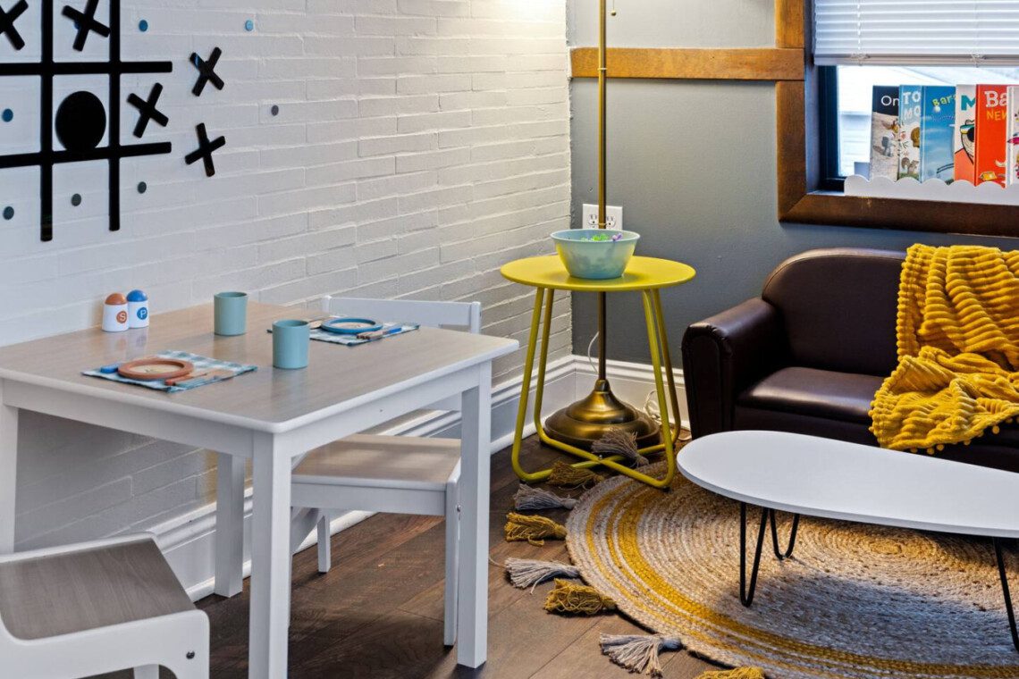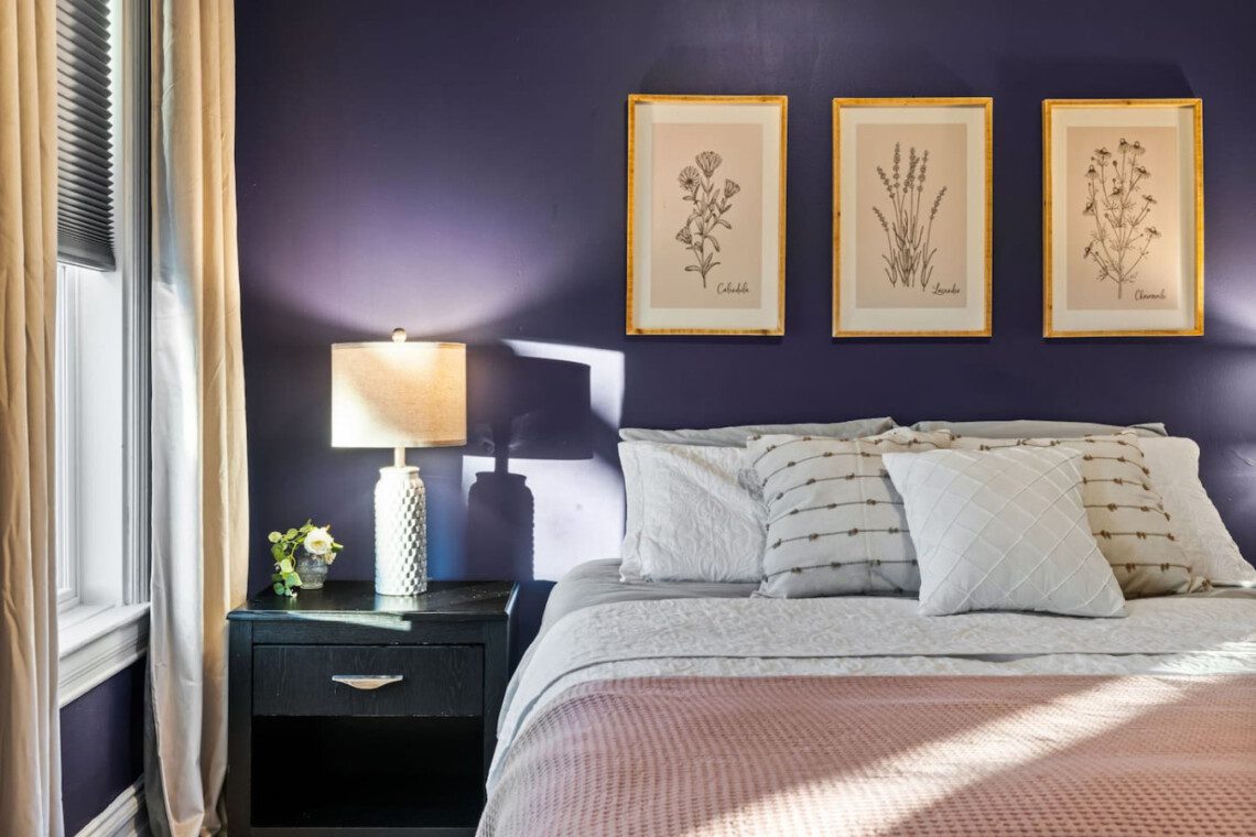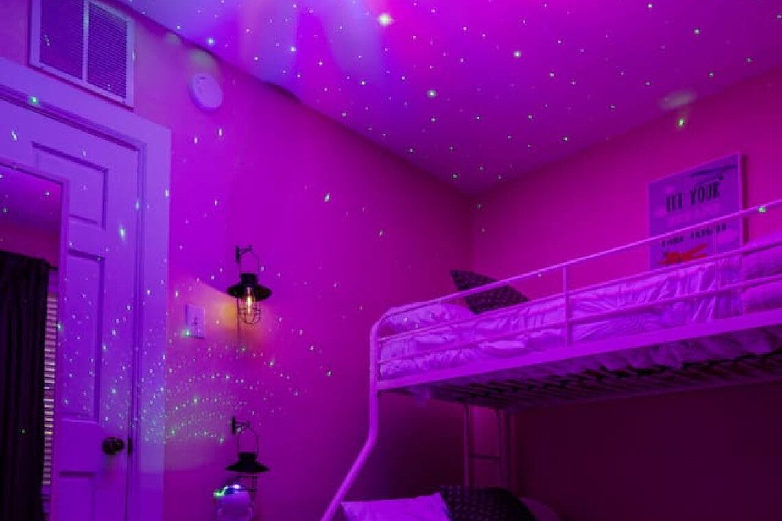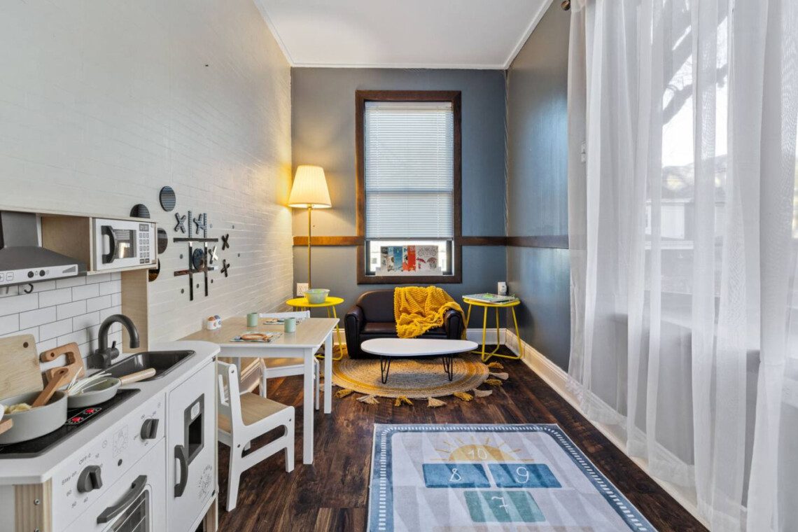 * Our second floor includes 3 comfortable bedrooms, each with queen beds and Smart TVs. There’s also a 4th (children’s) bedroom with a twin over full bunk bed that sleeps up to 3. Be sure to take note of charming details like the hand-painted fireplace tiles and views of the friendly neighborhood. The second floor also has a centrally located updated full bathroom.