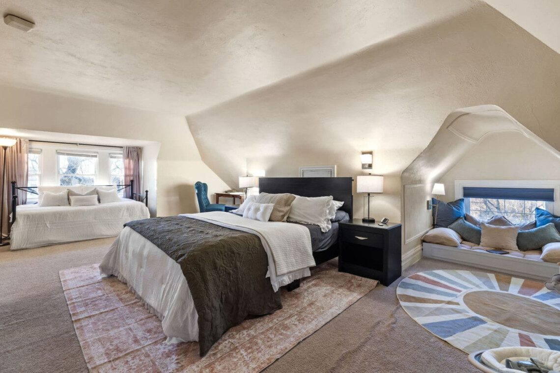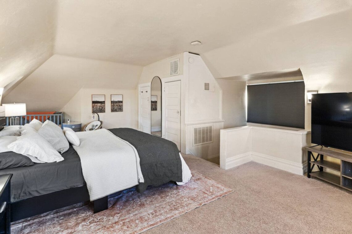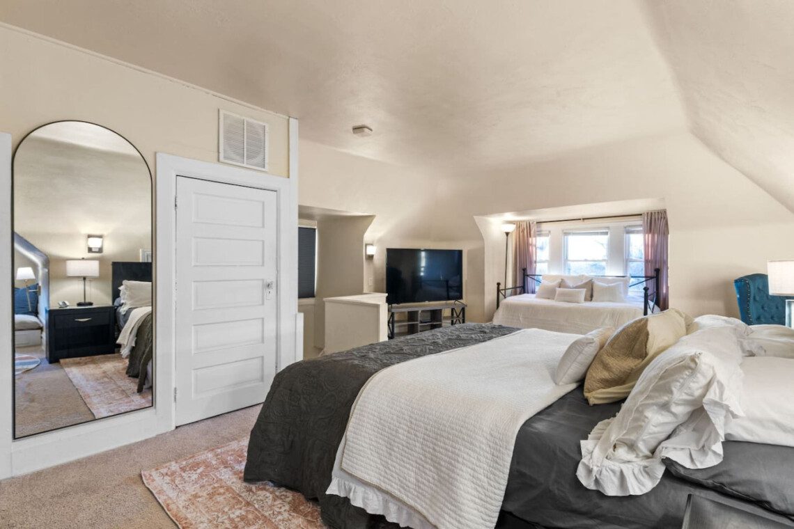 * Master bedroom: The lucky guests who claim this entire 3rd floor for their stay will get to enjoy a King bed, a day bed with a trundle, their own private living room with a 65″ smart TV..