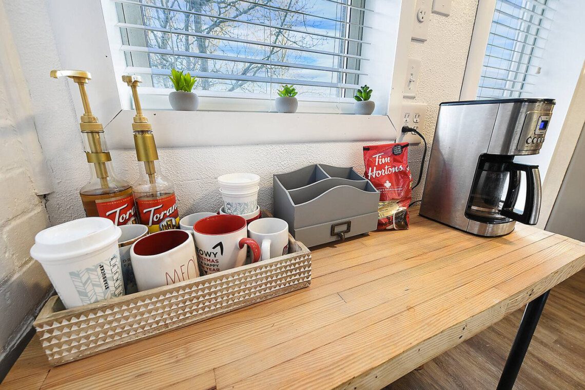 ✓ Coffee: Plenty of K-cups and ground coffee, Keurig, pot, and French Press