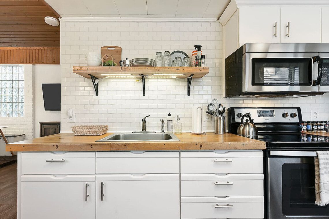 ✓ Kitchenette In Carriage House includes additional stove, oven, microwave, fridge, coffee maker – also fully equipped for cooking