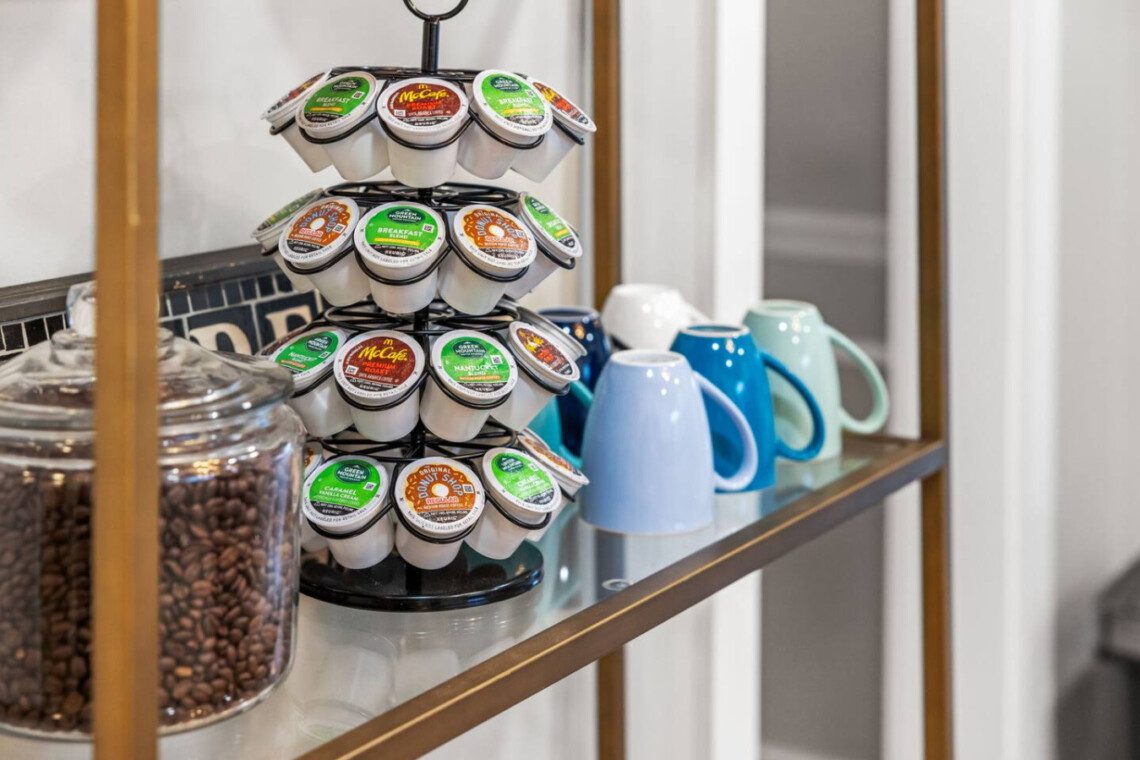 ✓ Coffee: Plenty of K-cups and ground coffee, Keurig, pot, and French Press