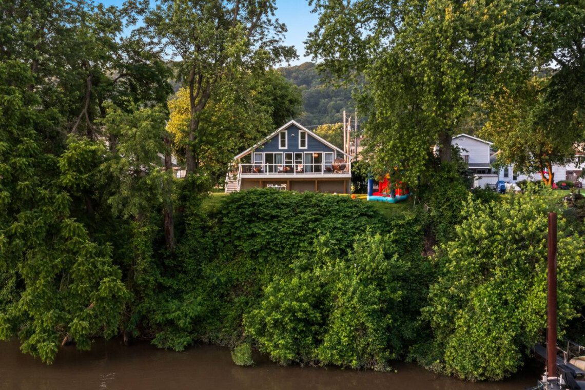 The house sits on a large riverfront lot, allowing you to enjoy the placid scene of the Ohio River from the large deck or backyard.
