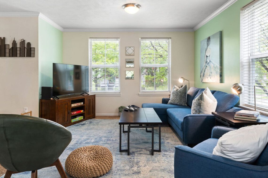 ✓ Entertainment: 55″ Roku TV in living room and king bedroom + 40″ smart TVs in the other bedrooms