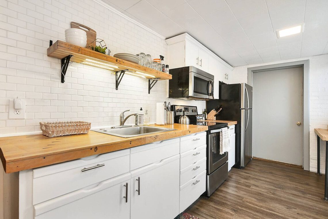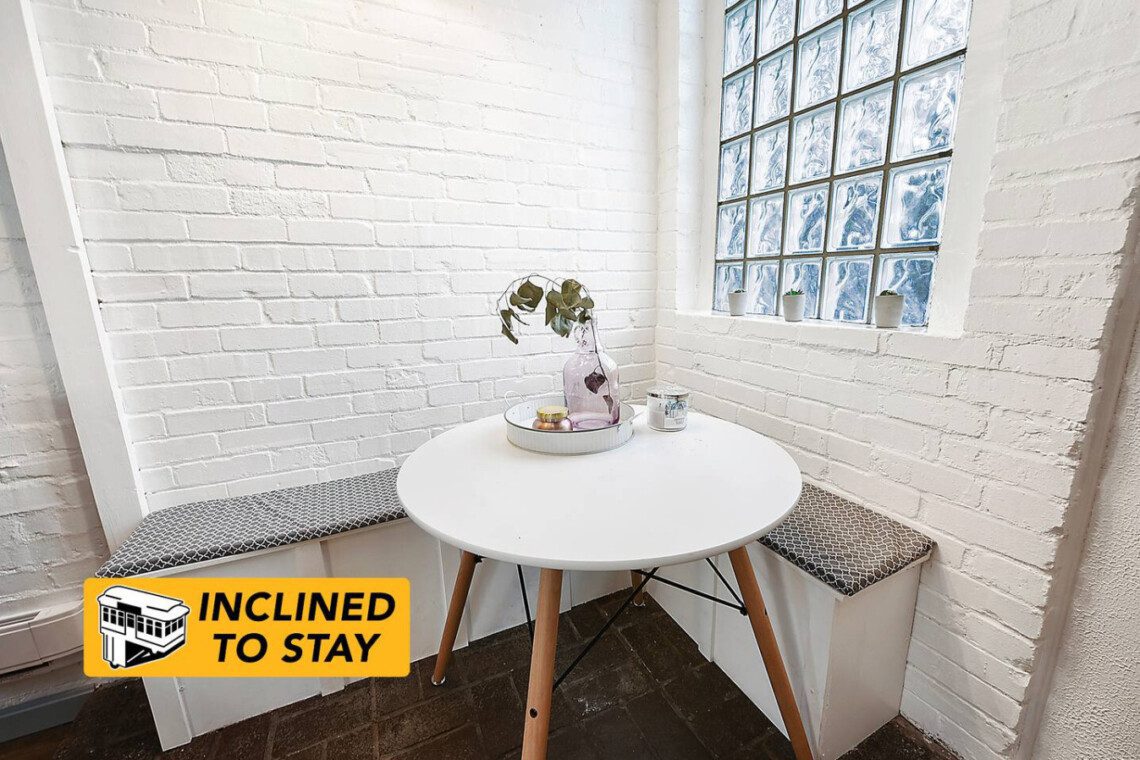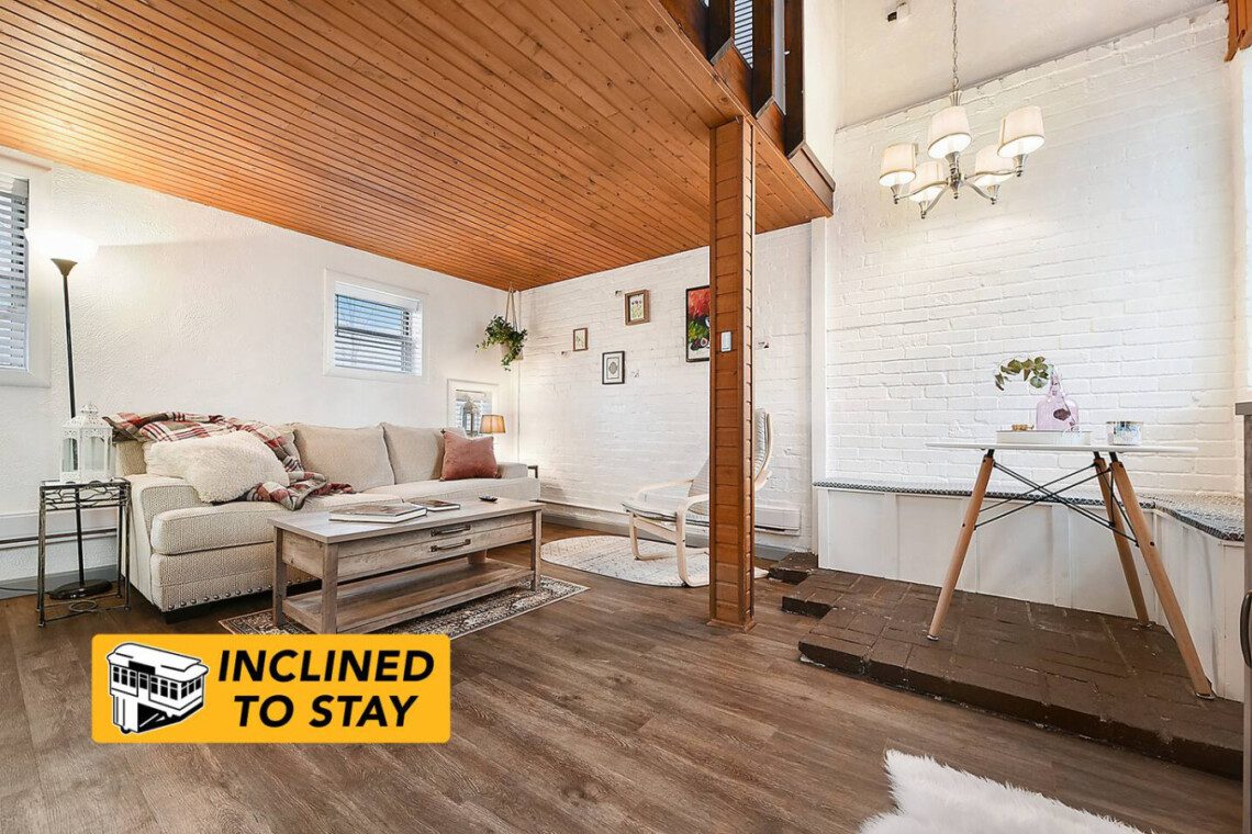 Our Updated Carriage House Loft is truly a unique place to stay in Pittsburgh. The 100+ year old space is renovated, but we kept the brick walls and installed reclaimed bowling lanes (from the famous, Forward Lanes) as shelves & countertops to give the space a real Pittsburgh feel.